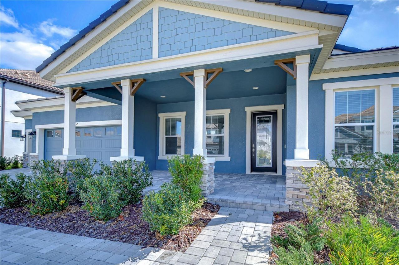 Welcome to the perfect blend of Elegance & Comfort! Built in 2022, this stunning WestBay Key Largo floor plan offers a seamless blend of luxury, convenience, and modern design. Boasting 3,192 square feet of beautifully crafted living space, this home features four spacious bedrooms, three pristine bathrooms, and a dedicated office, all designed for effortless living. From the moment you step inside, 12-foot-high ceilings and gorgeous tile flooring set the tone for an open, airy ambiance. The great room, adorned with a wood-beamed ceiling and French sliders to the lanai, flows effortlessly into the gourmet kitchen, where culinary dreams come to life. Enjoy sleek Sonoma white cabinetry, Arbor faucets, and stunning Calacatta Novello Corian Quartz countertops, creating a space as stylish as it is functional. For those who work from home, a private office with classic French doors offers the perfect retreat. When it's time to unwind, the bonus room, also with French doors leading to the lanai, provides a fantastic space for entertainment and relaxation. No backdoor neighbors ensure your peace and privacy. The primary suite, accessed through elegant double doors, is a true sanctuary. Featuring a spa-like en-suite with a soaking tub and separate shower, this retreat is designed for pure relaxation. Two additional bedrooms share a full bath, while a fourth bedroom offers the perfect guest space. Throughout the home, thoughtful details like crown molding, an oversized front porch, and a spacious screened lanai add charm and character. Step outside to a blank canvas awaiting your dream outdoor oasis, where you can enjoy Florida living year-round. Nestled in a desirable gated community just moments from Triple Creek Nature Preserve, this home offers the perfect blend of privacy, convenience, and outdoor adventure. Don't miss out on calling this stunning home that still offers a builder warranty until 2032, home!