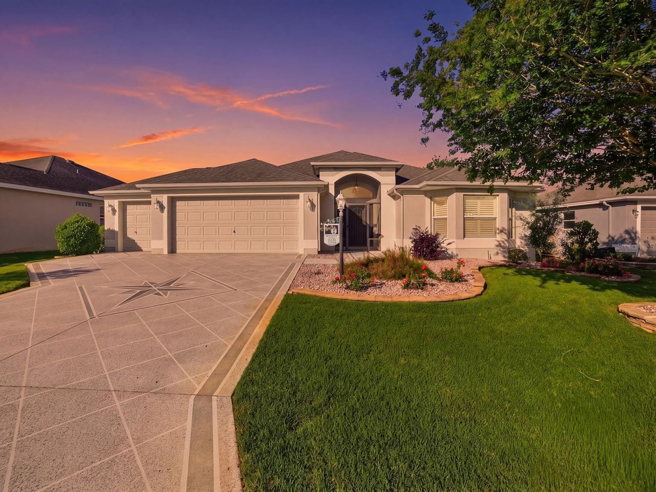 ~ Built in 2012 ~ Imagine arriving at your own beautiful block and STUCCO Designer LILY home with GOLF CART GARAGE in the Village of CHARLOTTE, where every day feels like a getaway. This 3-bedroom, 2-bath TURNKEY home offers style, space, and an unbeatable location in The Villages. A painted driveway welcomes you home, while the bright tiled entry with lead glass sidelights and transom window creates an elegant first impression. Inside, the home is filled with desirable upgrades including PLANTATION SHUTTERS, CROWN MOLDING, and smooth HAND-FINISHED volume ceilings (no popcorn). The heart of the home is the inviting kitchen featuring GRANITE countertops, rich MAPLE cabinets with crown detail, STAINLESS STEEL appliances, decorative pendant lights, and breakfast bar seating-perfect for casual mornings or entertaining friends after a day on the golf course. The private primary suite is a retreat of its own with laminate floors, tray ceiling, spacious walk-in closet, and luxurious bath with dual sinks, vanity, private toilet room, and ROMAN SHOWER accented with GLASS BLOCK. At the opposite end of the home, a POCKET DOOR creates privacy for the guest rooms and bath. The front guest room shines with BAY windows and TRAY ceiling, making it ideal for visitors or a home office. Step outside to the screened rear lanai, a wonderful extension of the living space, complete with roll-down shades for added comfort and privacy. It's the perfect place to enjoy your morning coffee, unwind in the evening, or relax year-round while enjoying the Florida breeze. With an INDOOR LAUNRY room featuring extra MAPLE cabinets and built-in utility sink, included furnishings, and move-in ready condition, this home makes it easy to begin your next chapter. If you've been dreaming of a golf cart garage home in a prime location in The Villages, this one is ready to welcome you. The village of Charlotte is conveniently located between Lake Sumter Landing and Brownwood Paddock Square; Close to Charlotte Neighborhood Pool, Captiva Rec Center, Bonifay Country Club, Sarasota Driving Range, Roosevelt Executive Golf Course, Sandhill Executive Golf Course, and Palmetto Executive Golf Course; three community pools, golf, and pickleball; and Colony Shopping Plaza with an abundance of shopping, restaurants, banks, and medical. Tax line reflects property taxes only, and is estimated. Bond Assessment is $1,212/year. (Bond payoff is $14,298.) Current Maintenance Assessment is $504/year. Current Fire Dept. $321/year. Note: Square footage information is taken from the Public Record and is deemed reliable, but not guaranteed. Room and garage dimensions are approximate and estimated: buyer to verify.